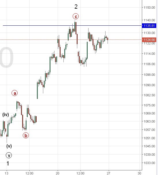 Как ожидалось, коррекция закончилась в районе синего уровня. На будущей неделе ожидаем дальнейшее снижение. Движение выше 1140 заставит нас пересмотреть краткосрочную разметку.