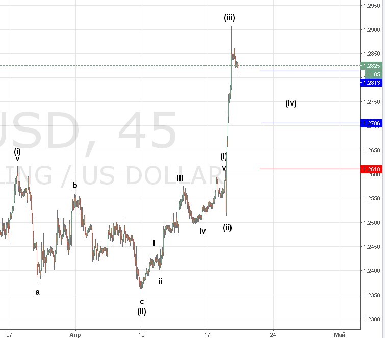 19.04 Опубликовано19.04.201720.04.2017Авторadmin ПоделитьсяПосле резкого укрепления фунта, мы перешли к варианту меньшей коррекции (ii) чем ожидалось. Считаем , что движение продолжится, как показано на графике, после чего мы пойдем к 1.3-1.32 . Красная черта — уровень отмены. 43% быков. Поделиться