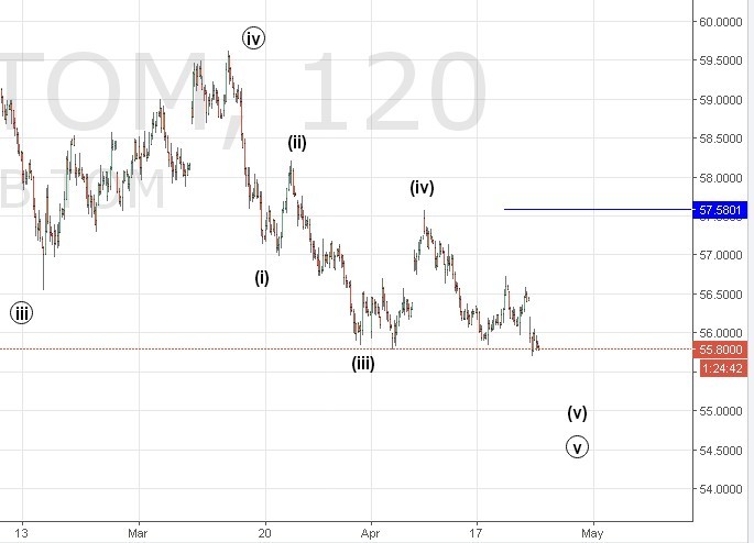 24.04 Опубликовано24.04.2017Авторadmin ПоделитьсяРубль сделал новые минимумы, предлагаем вариант КДТ в волне 5(кружок) с целями 55-54.5 . Движение выше синего уровня отменит этот сценарий. Поделиться