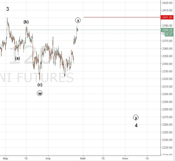 2. Мы делаем плоскую коррекцию . При достижении 2401 мы вернемся назад к 2320 и оттуда начнем рост.
