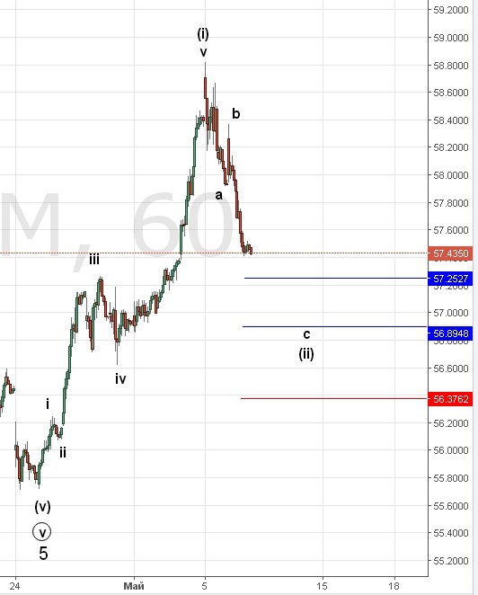 Рубль должен сделать более глубокий откат к синим уровням (красный крайний). После чего ожидаем продолжения восходящего движения.
