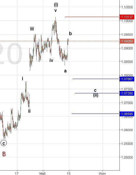 Считаем,что коррекция продолжится как показано на графике. Движение выше красной отметки отменит этот сценарий. 43% быков.