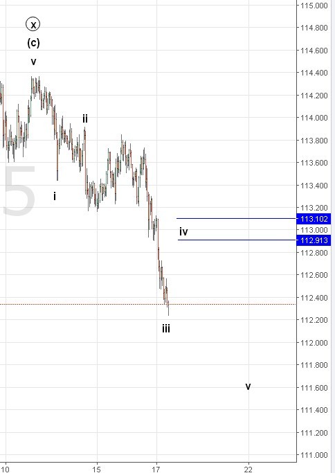 Как мы предполагали, пара начала снижение. Считаем, что оно продолжится, как показано графике. Движение выше 113.4 — отмена сценария.