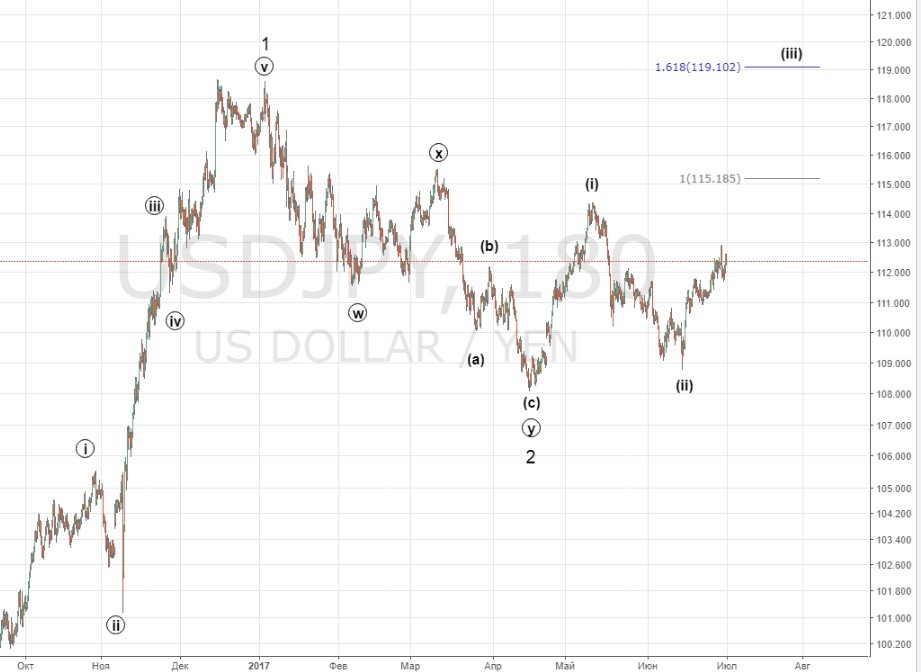 01.07 Опубликовано01.07.2017Авторadmin ПоделитьсяНаш сценарий разворота пары остается прежним. Ближайшие время движение будет развиваться как показано на графике (основная цель 119.1) 50% быков. Поделиться