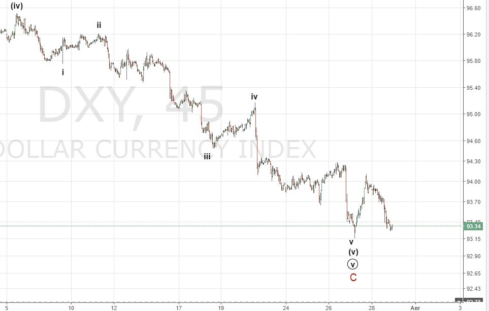Индекс продолжил снижение. Крайне пессимистичные настроения говорят нам о скором развороте. Возможно, он уже начался, для его подтверждения нужно проходить 95.2 и сформировать импульс , движение ниже 93.15 укажет на то, что снижение не закончено и мы можем уйти на 92.5- 92 .  12% быков.