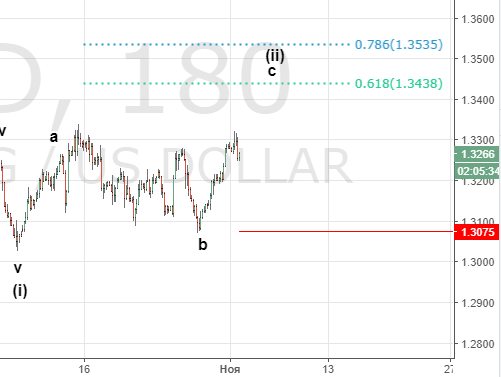 Движение цены заставляет нас внести некоторые изменения . Считаем, что коррекция еще не закончена и продолжится к указанны уровням. Движение ниже красной отметки — отмена данного сценария и продолжение ослабления фунта , также будет немного пересмотрена разметка (сообщим по мере выполнения) .