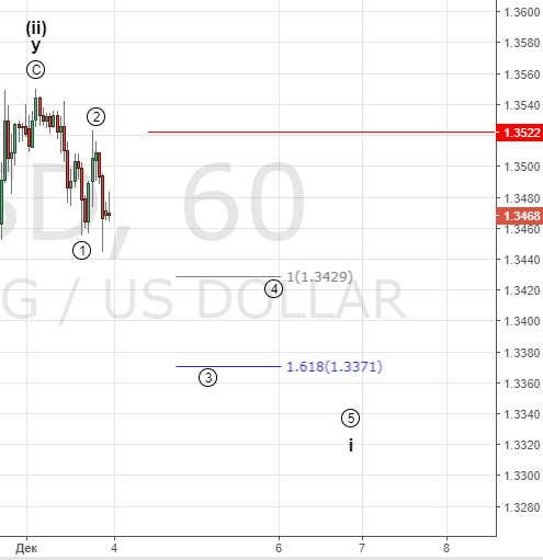 Пара вполне вероятно закончила рост . Считаем , что движение продолжится как показано на графике. Рост выше красной отметки отменит данный сценарий и будет указывать на еще один максимум , более подробнее рассмотрим такой вариант после этого события. 73% быков.
