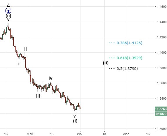 Начавшийся рост вполне может быть началом серьёзной коррекции к указанным уровням , 1.379- 1.393 основные. Альтернативный вариант предполагает , выполнение последних «4-5» и нас может ждать новый минимум. Однако откат должен быть в любом случае , т.к. сентимент на минимуме достиг 10% быков.