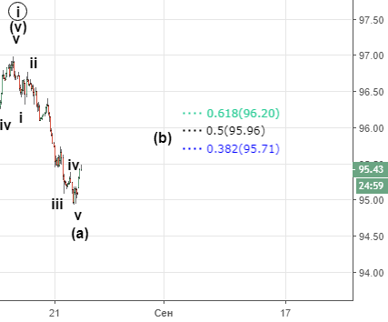 Индекс сделал импульс , предполагаем , что это волна а в зигзаге. В ближайшее время ожидаем откат к указанным уровням . Альтернативный вариант предполагает, что оканчивается только iv и коррекция после небольшого роста. Рекомендация: зафиксировать прибыль и дождаться роста , либо удерживать и потом ещё добрать.
