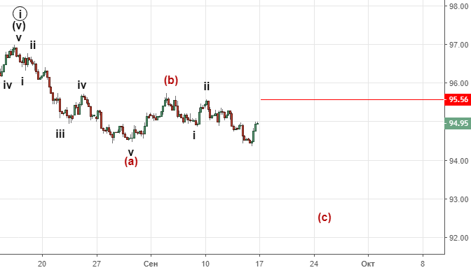 15.09 Опубликовано15.09.201815.09.2018Авторadmin ПоделитьсяДвижение выше красной отметки укажет на то , что коррекция (b) ещё не закончилась (см. уровни на прошлом графике). Однако в любом случае ожидаем продолжение снижения. Поделиться