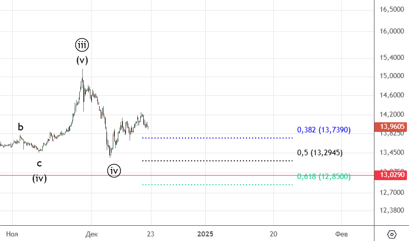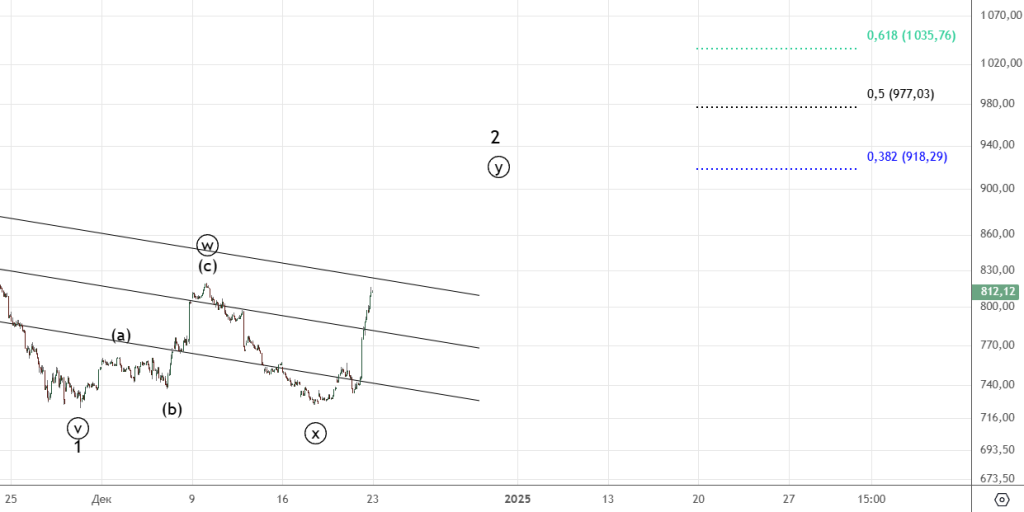 Сомнения по поводу окончания волны 2 подтверждаются , рост индекса возобновился. Цели прежние , пока с минимума 17.12 импульса вверх нет.