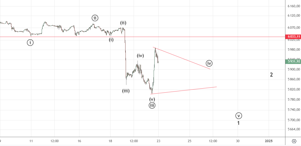 Скорее всего идет волна ((iv)) , которая будет иметь форму треугольника . Стоп — 6033.11 , если пройдем , то очень вероятно увидим новую вершину.