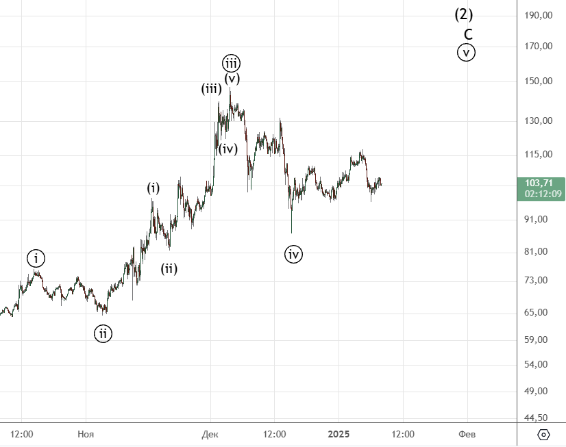 Судя по всему сделали ожидаемую ранее волну (b) . Сейчас идет волна (с) .