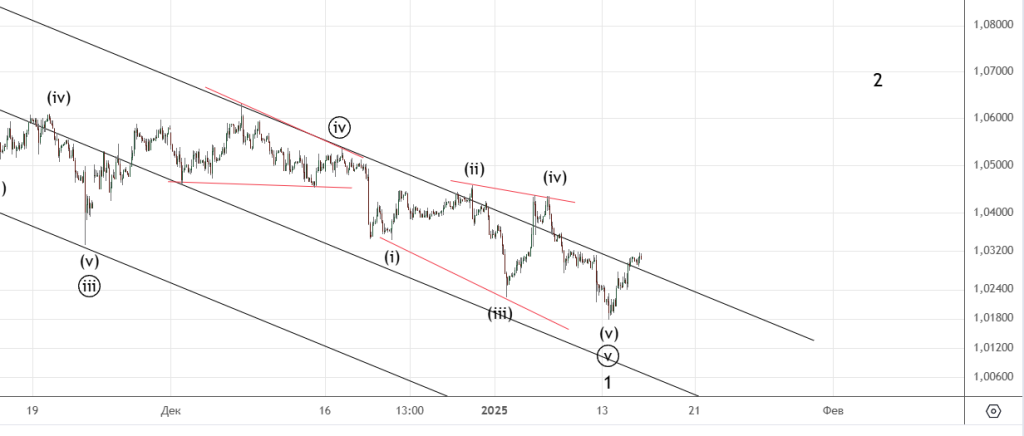 Сделали еще одно движение вниз , которое оказалось больше ожидаемого , поэтому немного корректируется подсчет . Ждем формирования импульса вверх. Альтернатива — укрепление доллара еще не закончилось , но по циклам уже должно начинаться его ослабление.