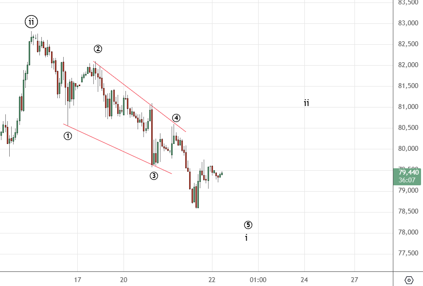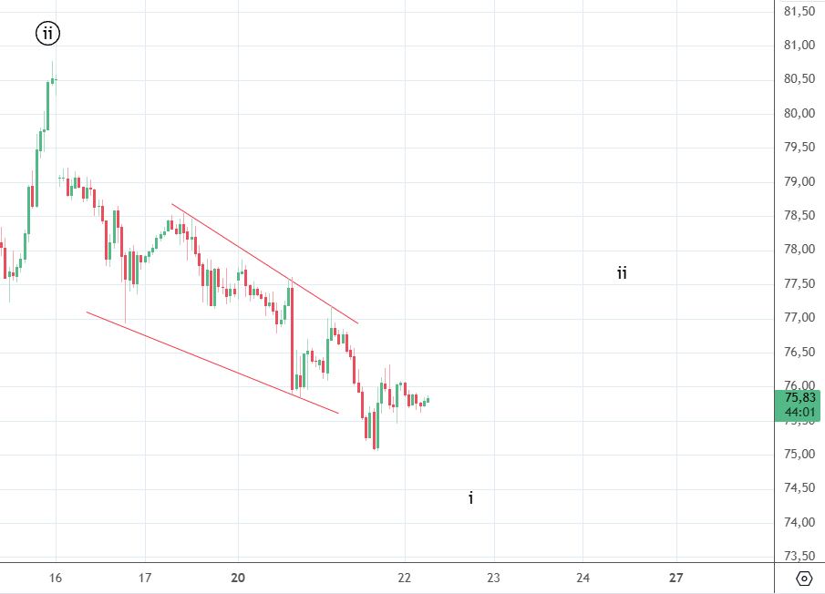 Началось движение вниз , но оно идет зигзагами. Основной сценарий — начальная диагональ в волне i . Это спорная модель , которая довольно часто по итогу оказывалась коррекцией . Более детально можно будет говорить о перспективах , когда пойдет рост в волне ii .