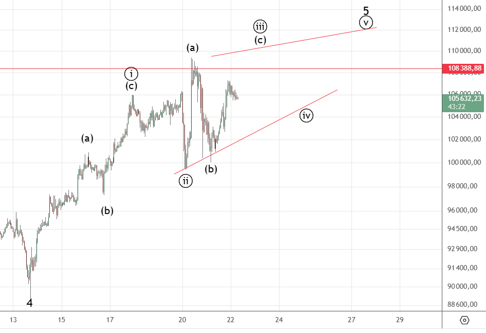 Все же сделали новый максимум . Ожидается продолжение роста . Основной вариант — КДТ в волне 5 . По эфириуму и лайткоину без изменений.