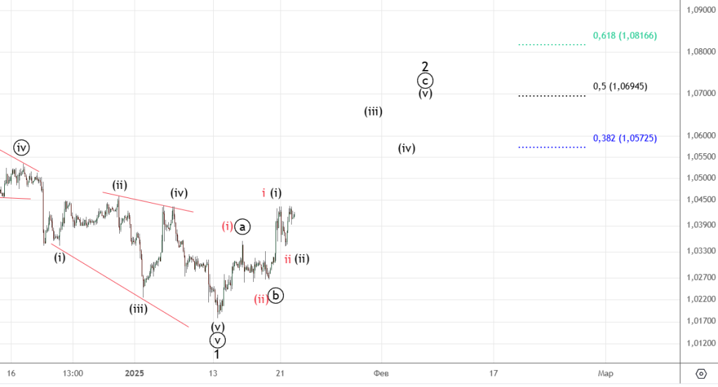 Как предполагалось ослабление доллара продолжилось . Указаны основные цели для волны 2 и два варианта движения к ней.