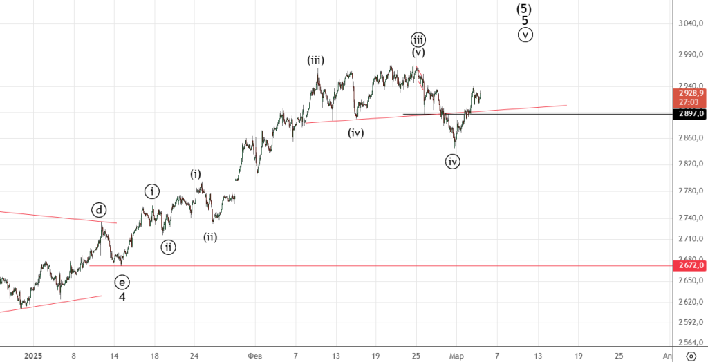 Как ожидалось прошли 2897 , однако рост оказался больше ожидаемого. Поэтому предполагается , что будет еще одна вершина.