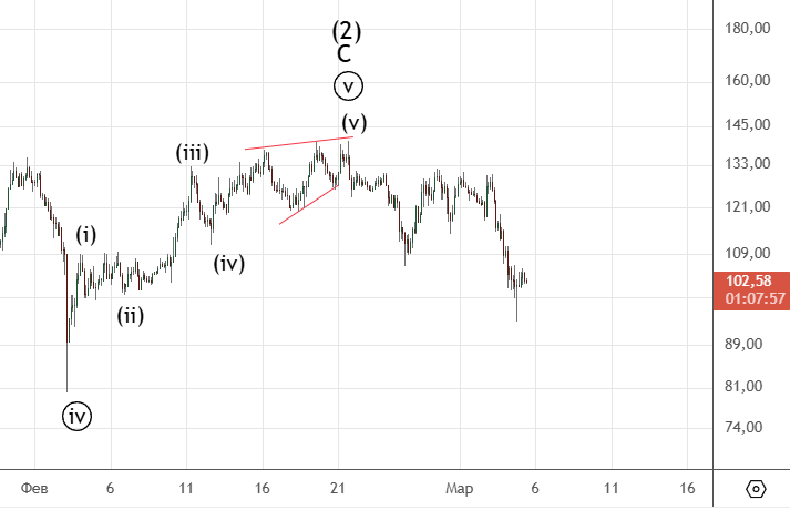 У Пректера прогнозируют еще два подразделения вверх , сейчас чертим (v) в ((iii))