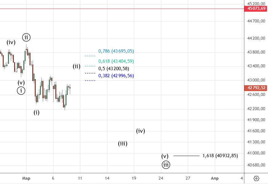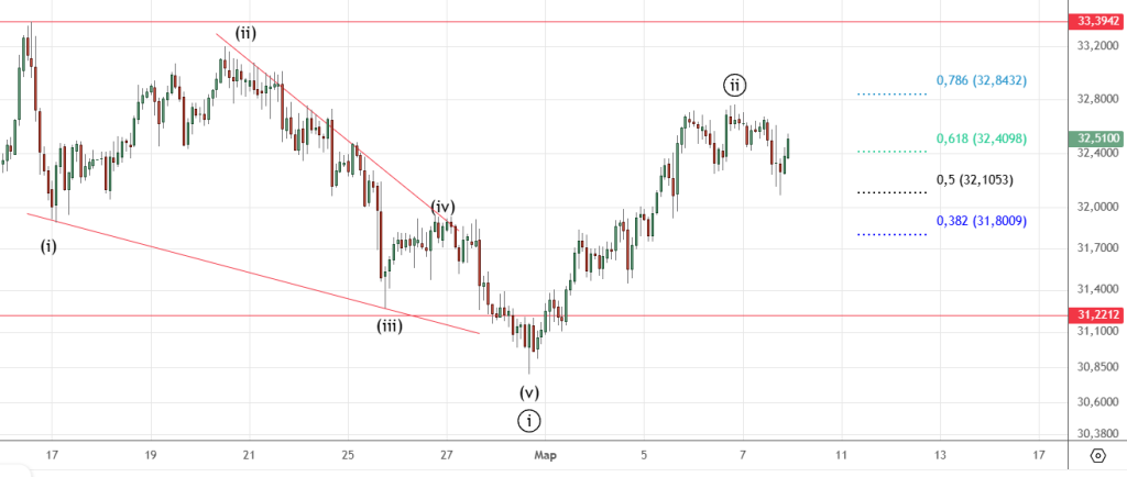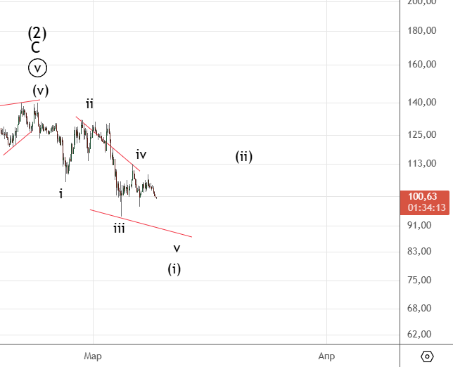 Предполагается , что волна (ii) еще не закончилась : сделаем небольшое движение вверх и только потом падение возобновится.