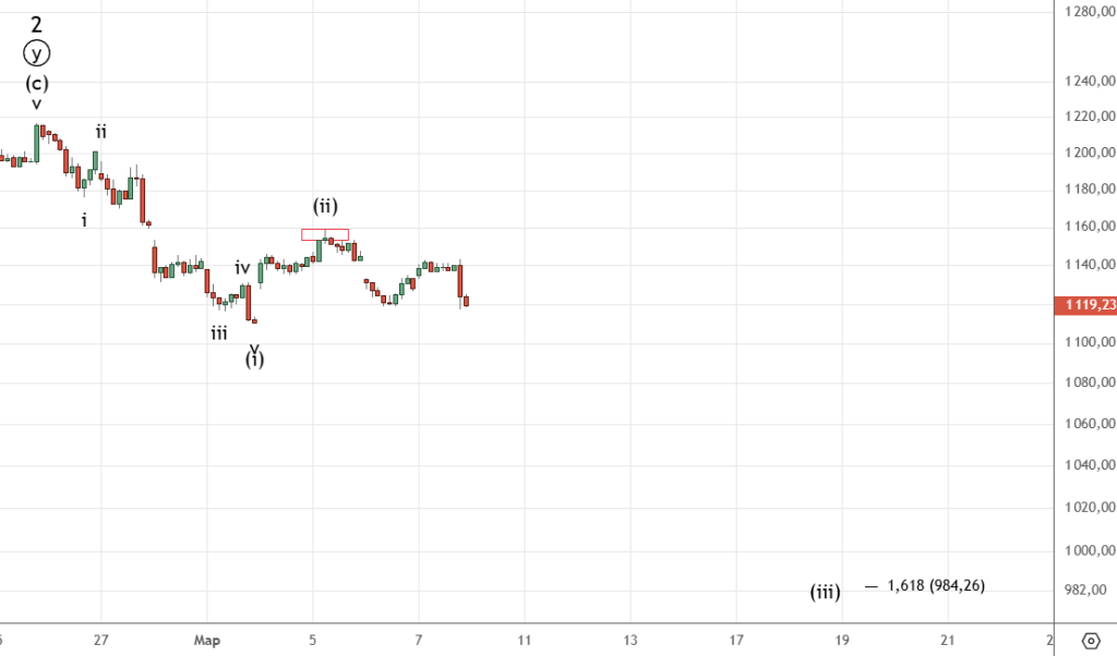 Как предполагалось закрыли гэп , падение возобновилось. Основная цель для (iii) — 984.26 . Возможно (ii) еще не закончилась.