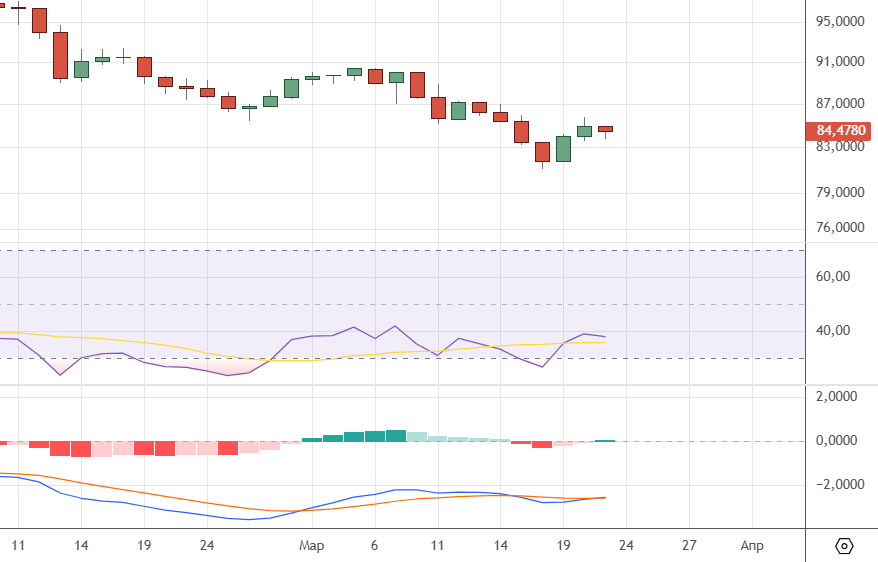 Индикаторы RSI и MACD (нижний) .