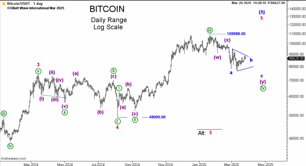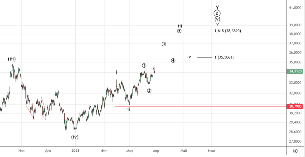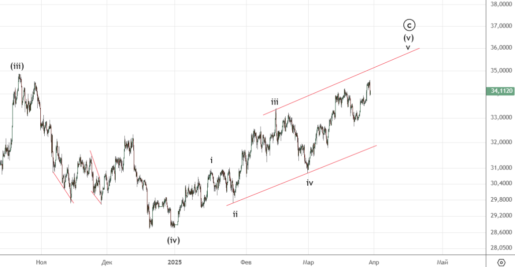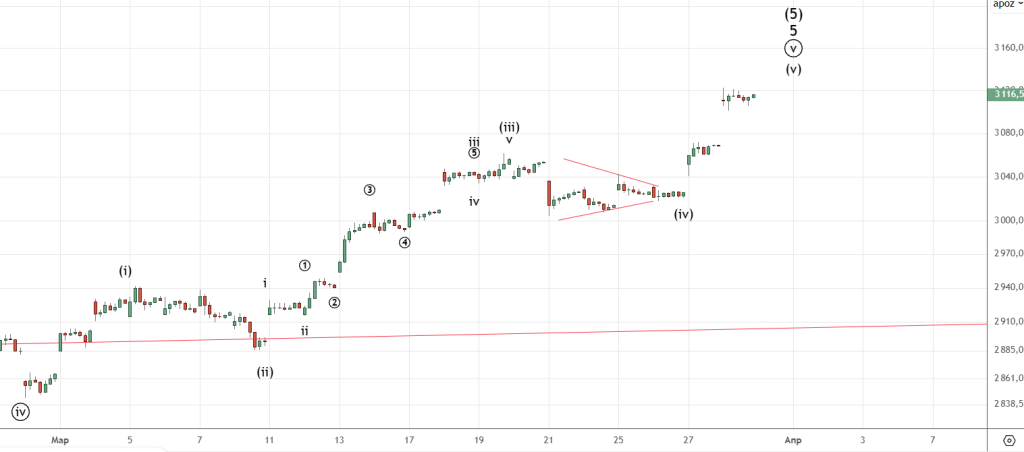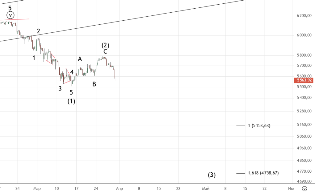 Как ожидалось завершилась коррекция (iv) и сделали еще одну вершину. Скорее всего увидим еще одно небольшое подразделение вверх и только потом начнется снижение.