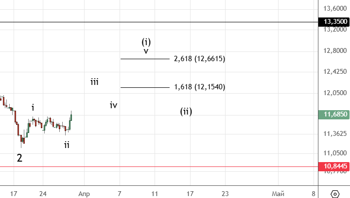 Коррекция (ii) скорее всего уже закончилась , указаны основные цели для (iii) .
