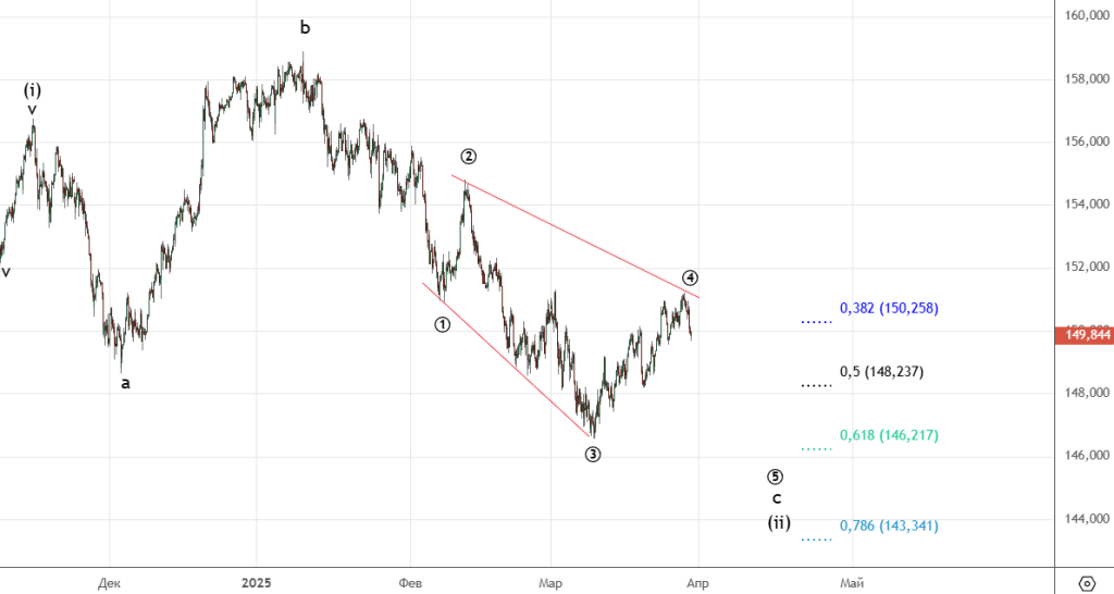Есть небольшие корректировки , но тем не менее цель 146.217 в силе.