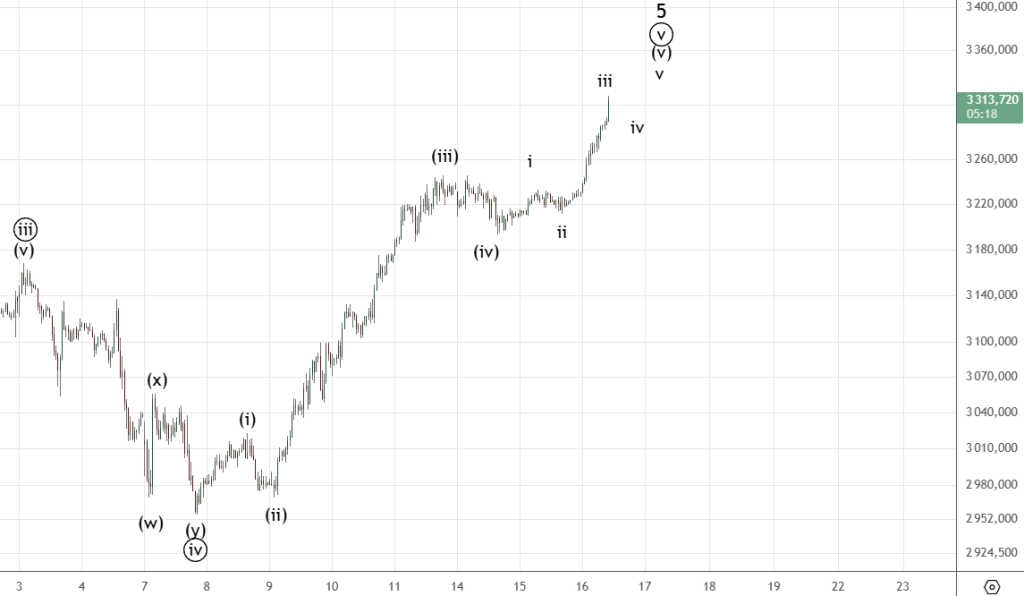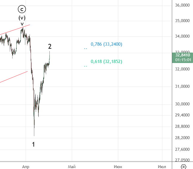 Как ожидалось , сделали небольшую коррекцию (iv) после рост возобновился. По структуре похоже он еще не закончился.