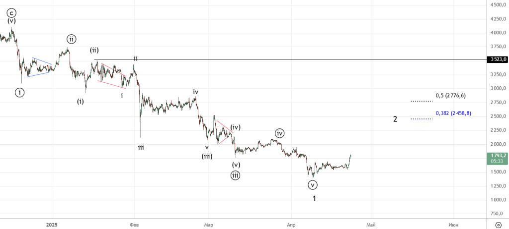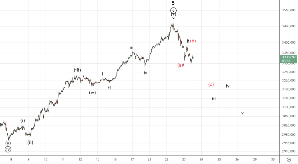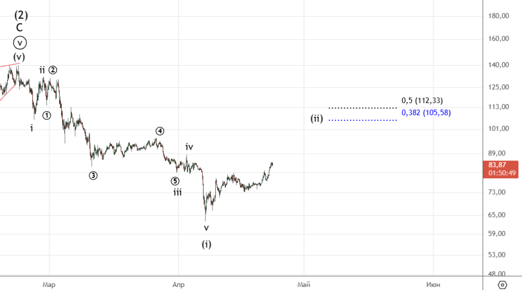 Началась коррекция , идет движение в волне ((iv)) в указанный диапазон . После ожидается завершающая ((v)) .