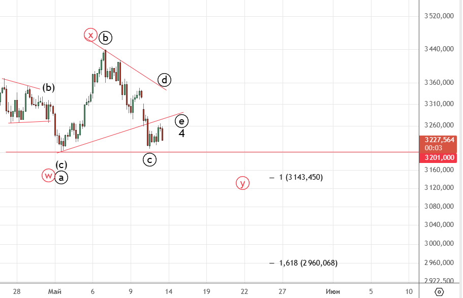 Пока все по плану , если пройдем вершину волны ((iv)) , то будет реализовываться сценарий красным . Только потом падение возобновится.