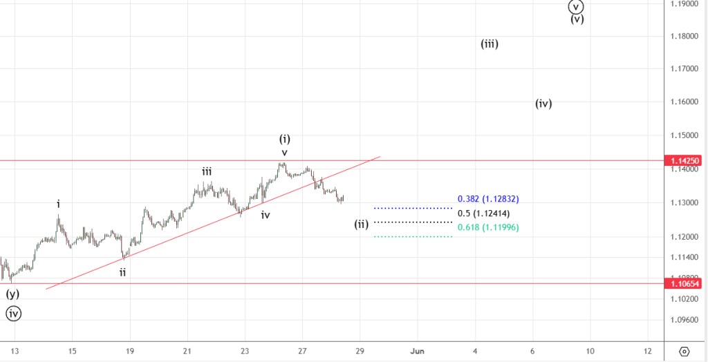 Завершился импульс в волне (i) , пошла коррекция (ii) к указанным уровням.