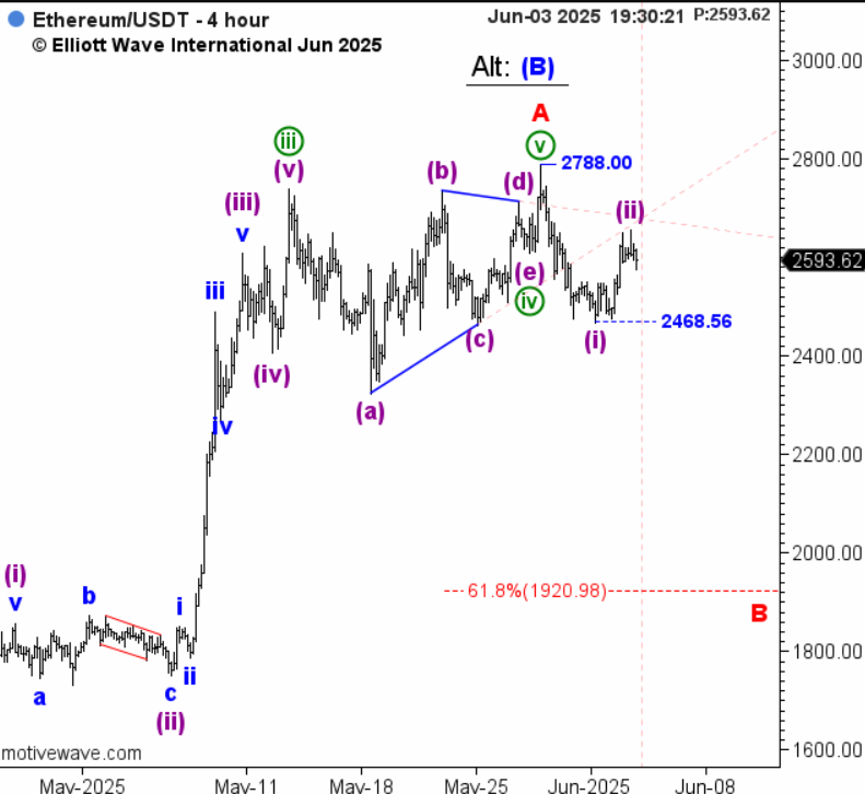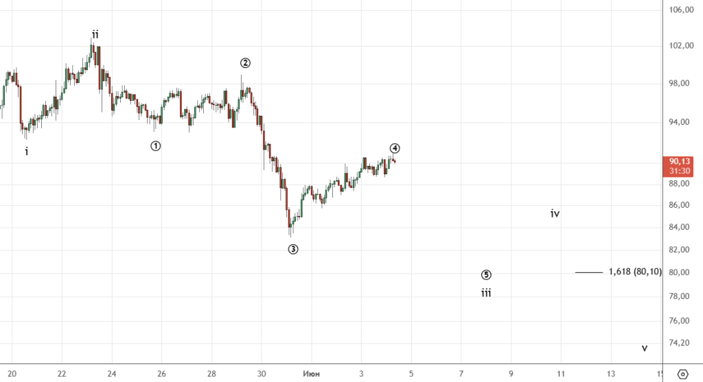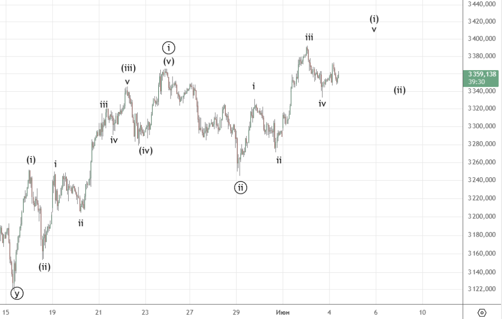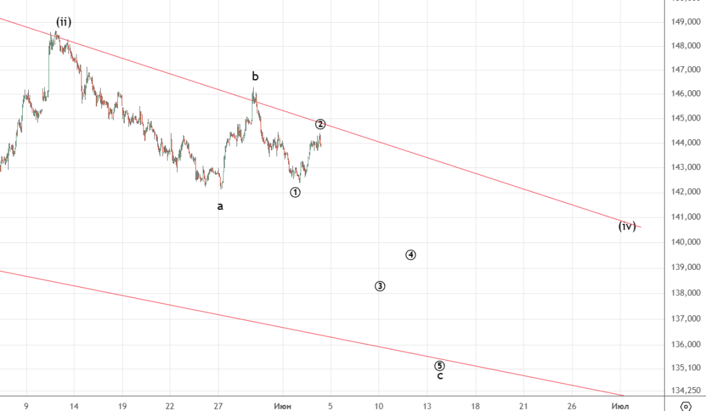 Основной вариант на графике . Возможно продолжение волны ((ii)) в виде плоской коррекции , как в альтернативном сценарии по евро.