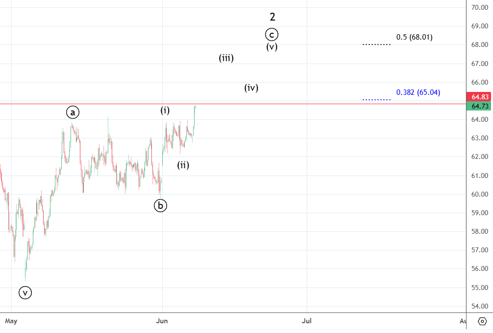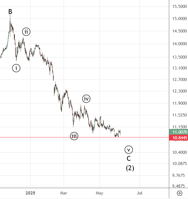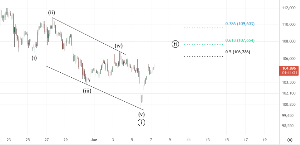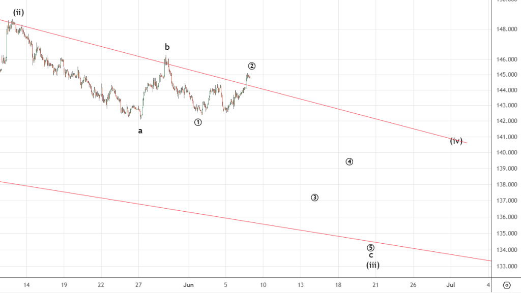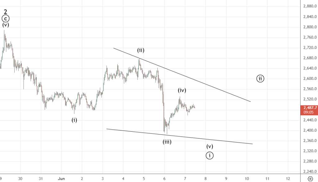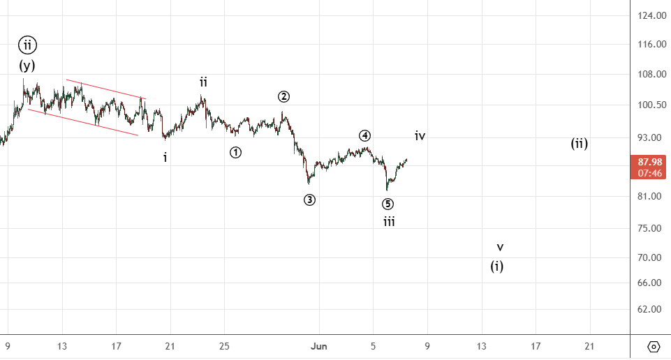 Движение вниз судя по всему было начальной диагональю . Она завершилась и сейчас идет коррекция ((ii)) к указанным уровням.