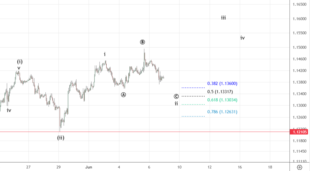 Небольшие корректировки в подсчете. Идет плоская коррекция в волне ii . Стоп — 1.12105.