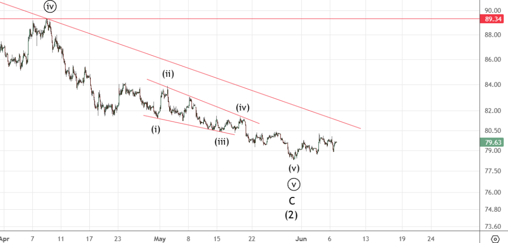 Также продолжается коррекция ((2)).