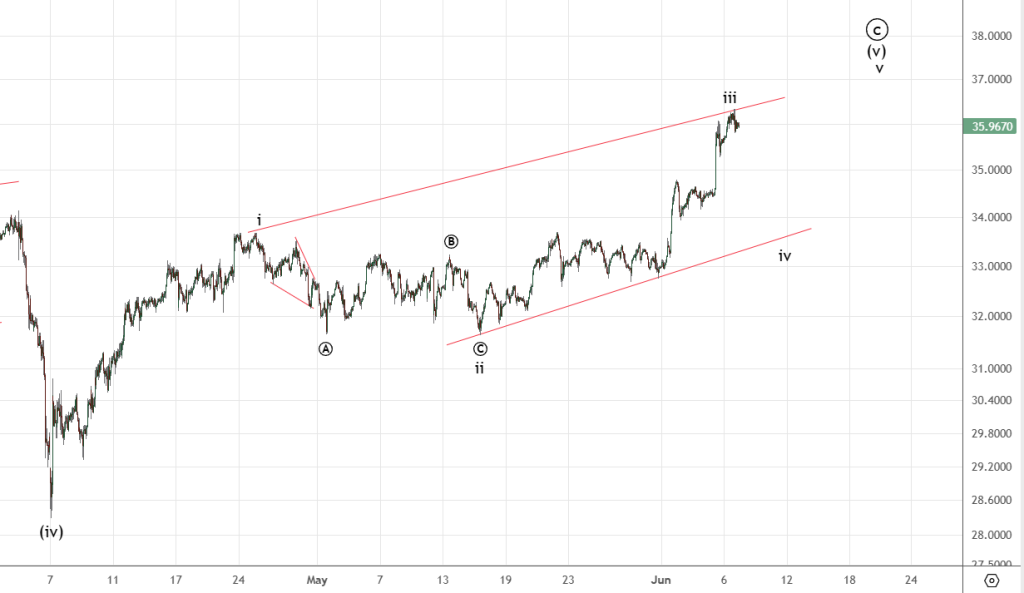 Рост продолжается. На графике ниже показан вариант окончания iii и начала iv .