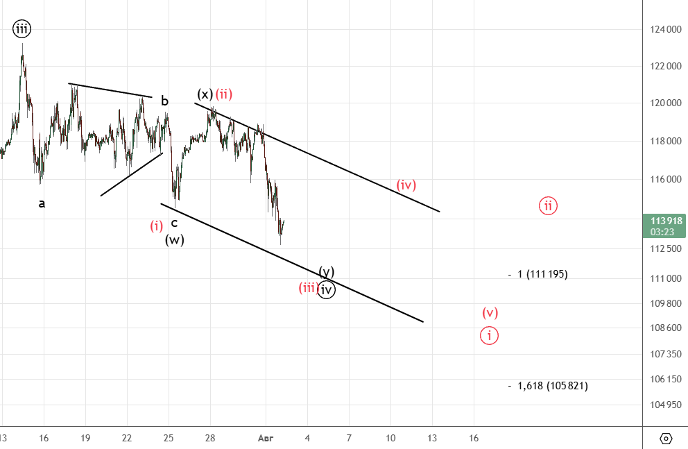 Сложная волновая структура. По аналогии с евро очень вероятно развернулась и иена . Пока импульса вверх нет.