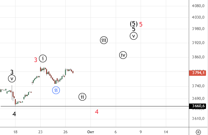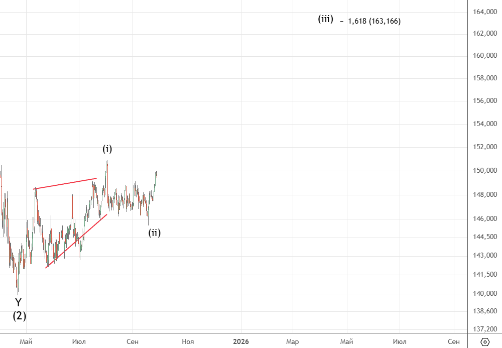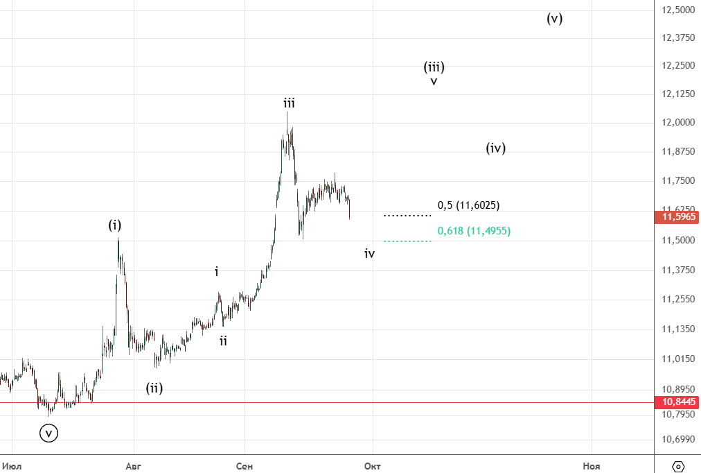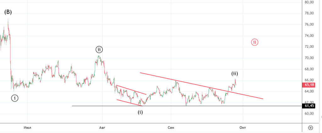 После небольшого снижения начался рост , вариант продолжения коррекции пока в силе . Альтернатива — ((ii)) уже закончилась.