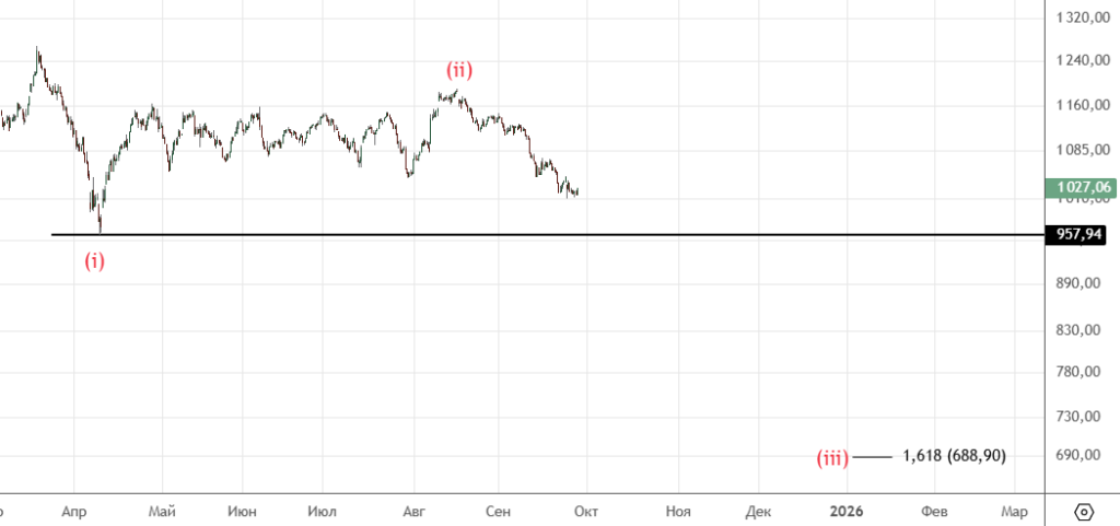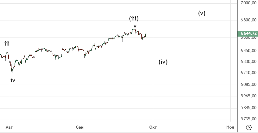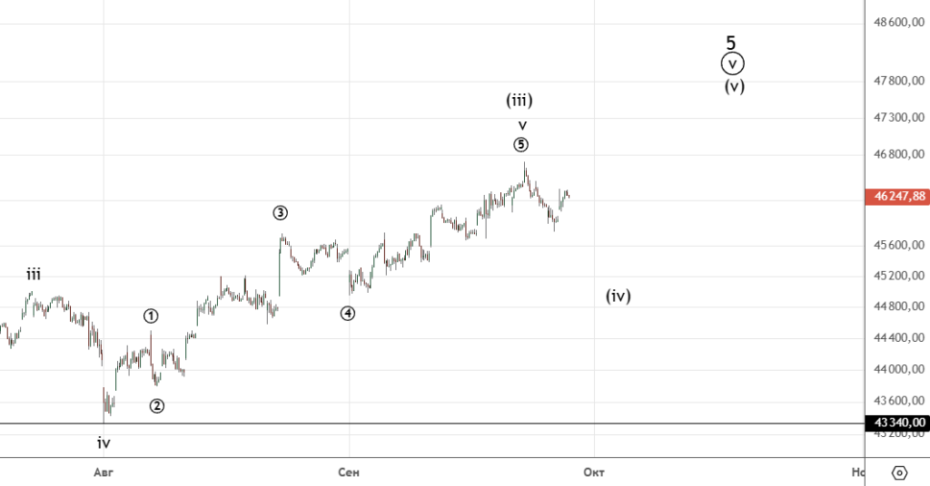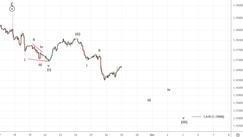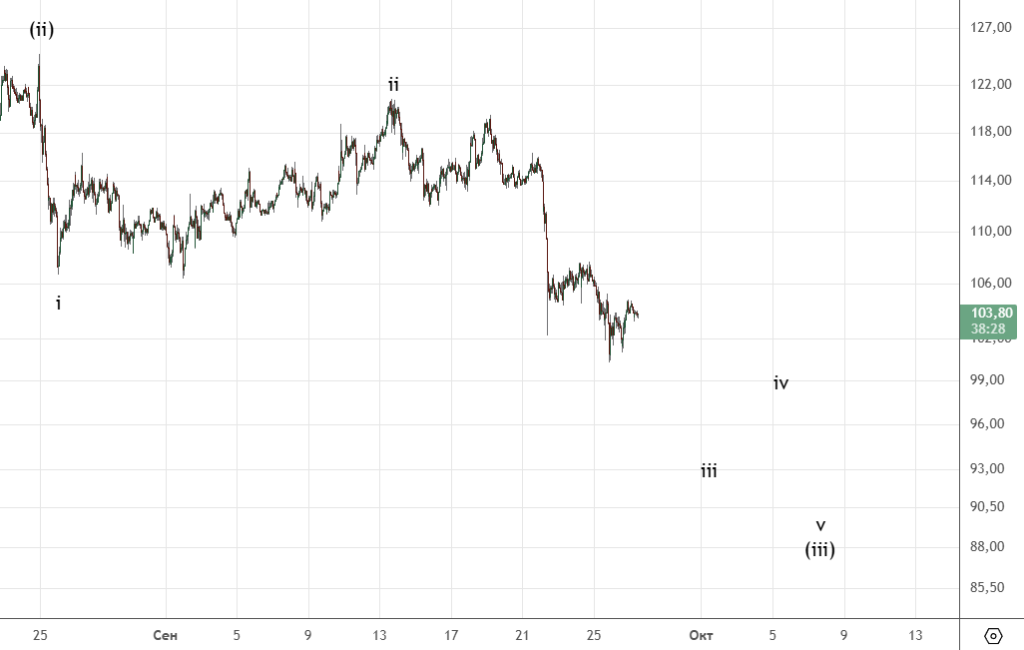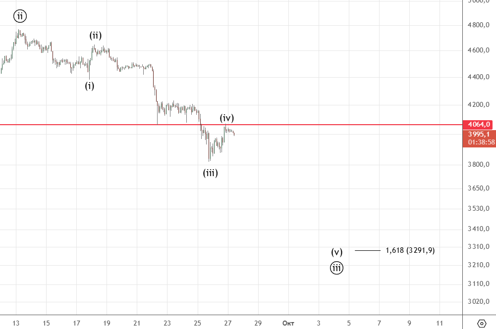 Есть небольшое движение вниз , вполне вероятно это начало коррекции (iv) . Ожидается продолжение снижения.