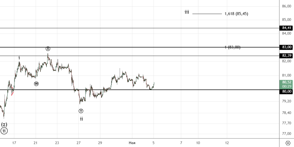 Снова протестировали 80 и пошли вверх . Цель 85.45 в силе.