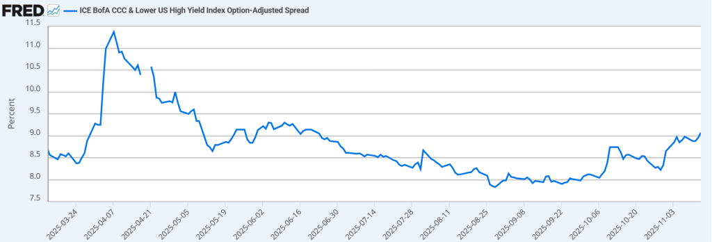 Спред . Тут прошли отметку 9% , есть корреляция со стрессом . Крипта как видим на это четко реагирует.