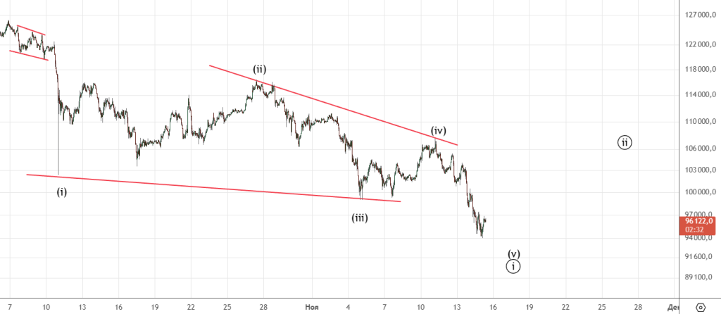 Тут все по плану , пробили 99000 . Падение еще не закончилась , по крайней мере сигналов к росту нет.