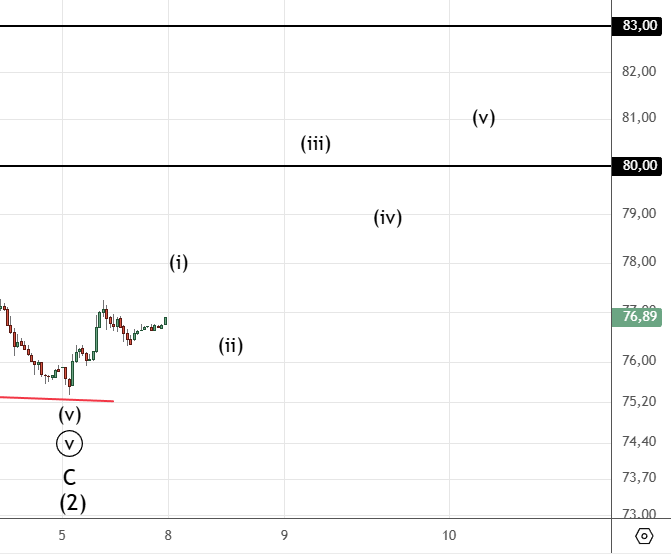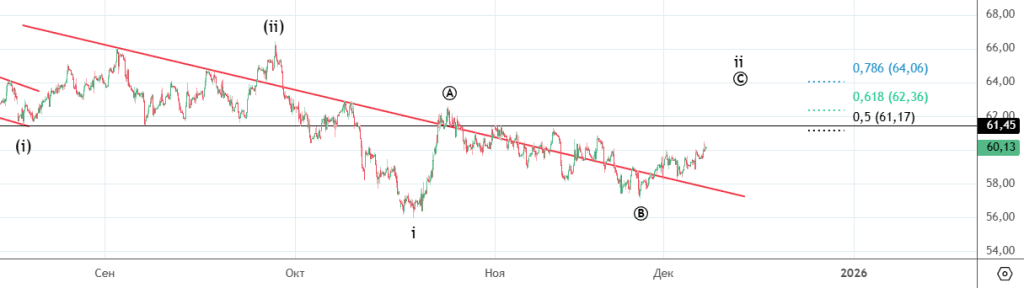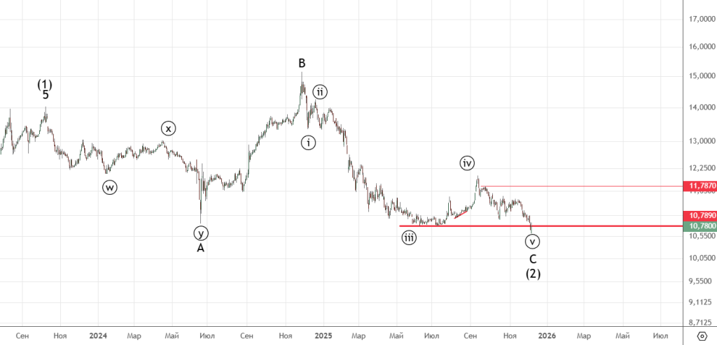 Скорее всего у нас идет коррекция в волне ((ii)) , вариант с завершающей волной (v) в ((i)) альтернатива.