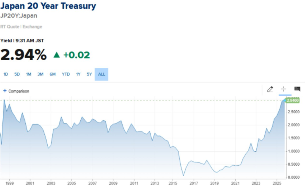 Из последних событий — быстрый рост доходностей японских облигаций , это скорее всего вызовет сворачивание керри-трейд по иене , который был долгое время важным фактором роста рынков. Сейчас доходность японских 20-леток выше уровня 1999-го