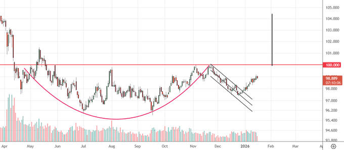 Формируется модель » чашка с ручкой» в индексе доллара.