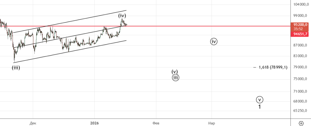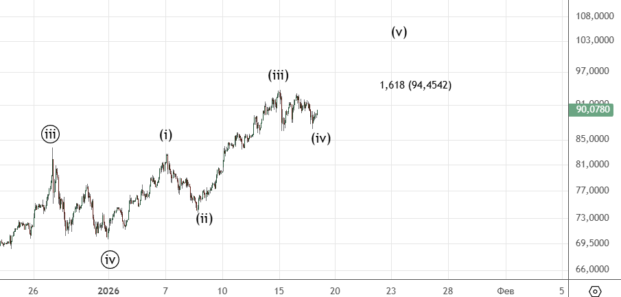 Тут почти сделали цель 94.45 , сейчас идет коррекция (iv)