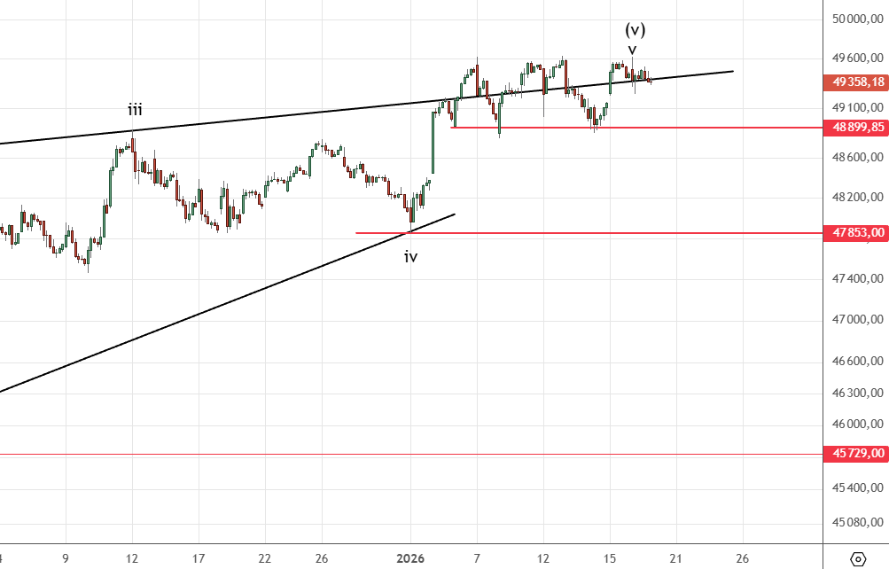 Идет боковик. На пробое 48899 можно пробовать набирать шорт , следующий важный уровень — 47853 .