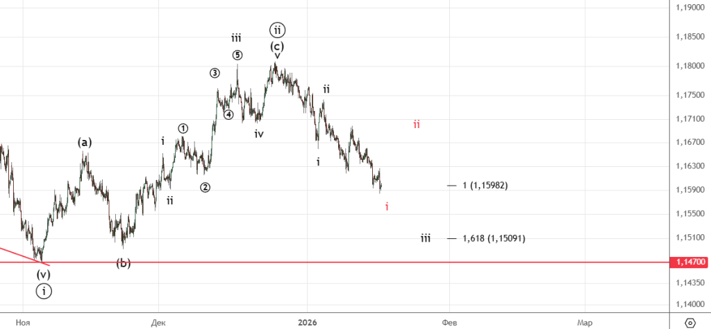 Сделали цель 1.1598 , следующая 1.1509 . Возможно уже закончилась вся i и пойдем чертить ii т.к. ожидается поход на низы КС цикла по индексу доллара.